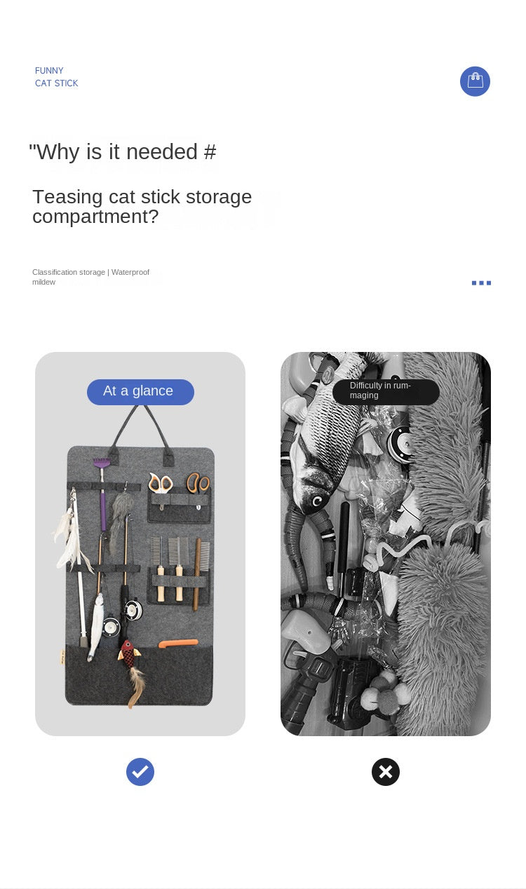 Durable Material: Constructed from sturdy materials, it can withstand regular use and the weight of the stored items. The bag is built to last, ensuring it remains a reliable storage solution for your cat teaser wands.